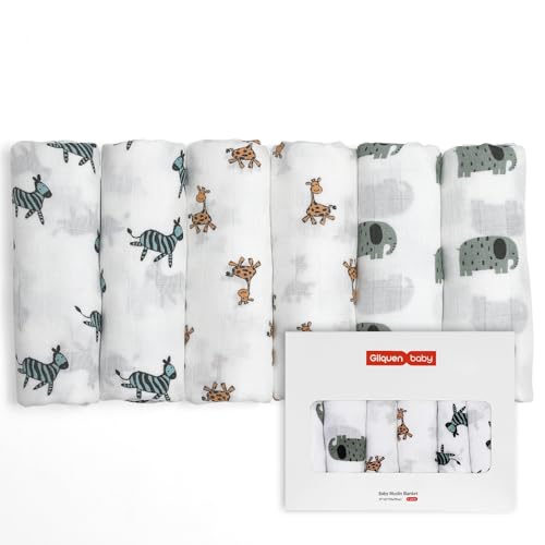 GLLQUEN BABY Lot de 6 Mousseline de Coton Biologique, Carrés de Mousseline 70x70cm Multi-usages: Couverture emmaillotage, Bavoir, Ultra Doux, Respirant, Cadeau Naissance Fille et Garçon(Animal)