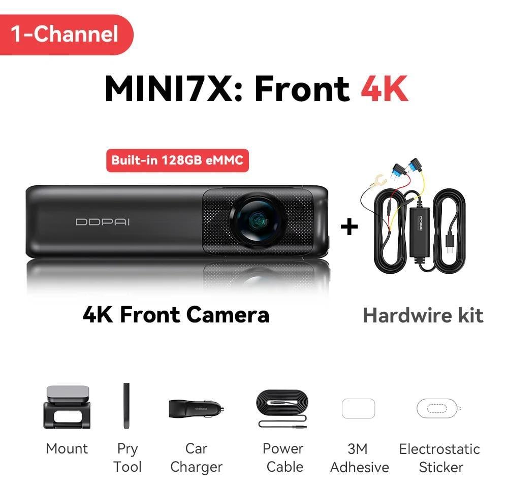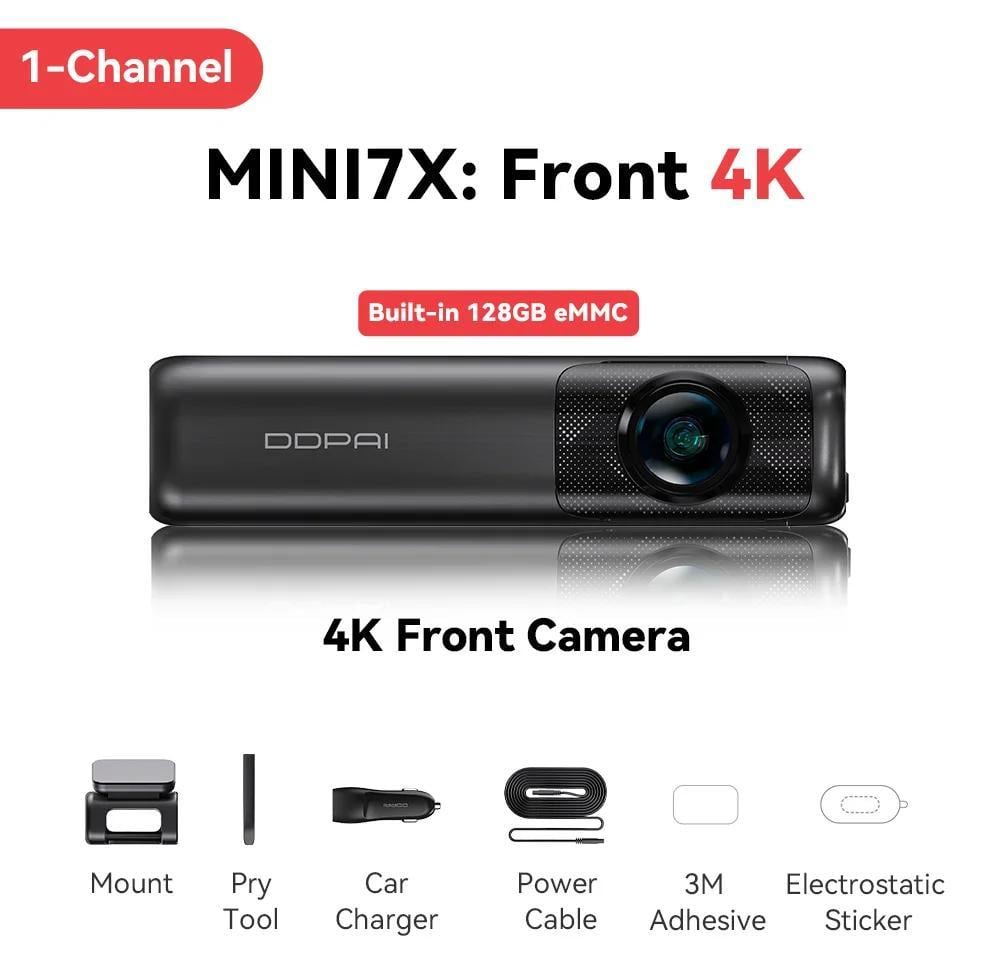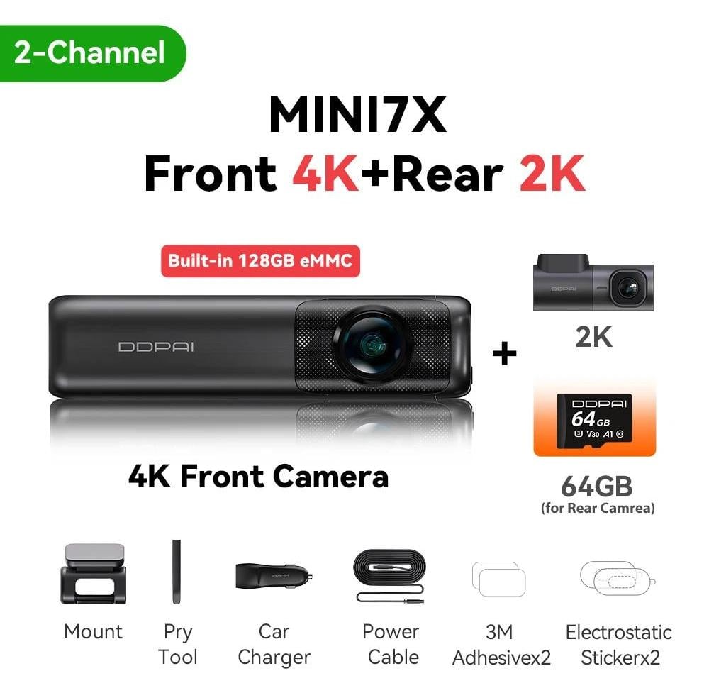 Caméra embarquée, résolution 4K Ultra HD, enregistrement double canal, 2 canaux, eMMC 128 Go intégré