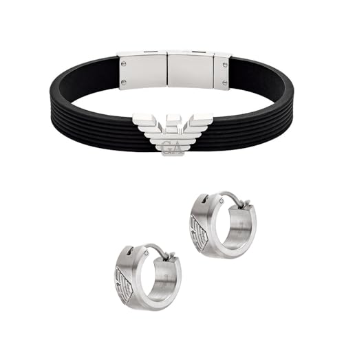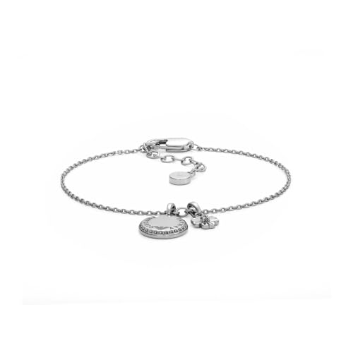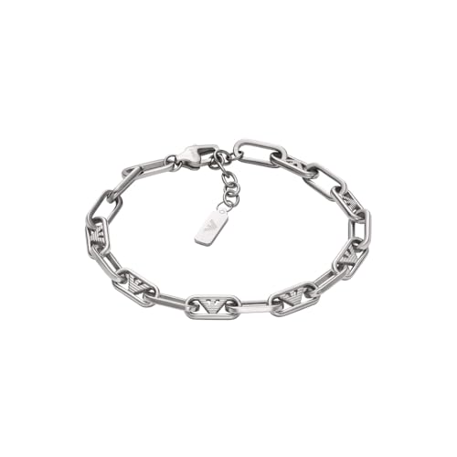 Emporio Armani Bracelet pour homme en acier inoxydable ou perlé avec fermoir mousqueton, Ton argenté