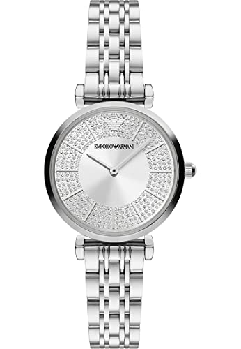 Emporio Armani Watch For Women, 32mm Two hand Quartz movement with Silver tone Stainless steel strap