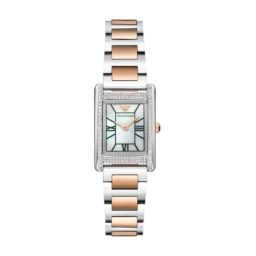 Emporio Armani Watch for Women, 22mm Rectangle Case Quartz Two Hand Movement with Stainless Steel Or Leather Strap