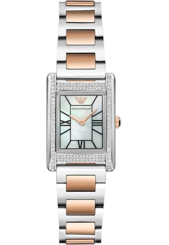 EMPORIO ARMANI Watch for Women, 22mm Rectangle Case Quartz Two Hand Movement with Stainless Steel Or Leather Strap