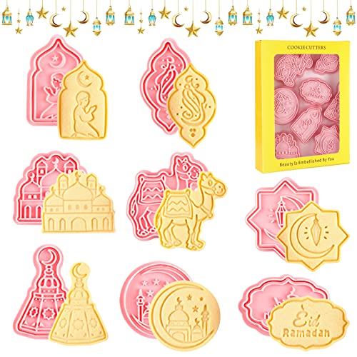 8 Pièces Emporte Piece Eid Mubarak, Decoration Aid Moubarak, Emporte Piece Ramadan, Emporte Piece Biscuit, Emporte Piece Moule Biscuit, Decoration Eid Mubarak pour Enfant Cadeau Aid Ramadan Fête