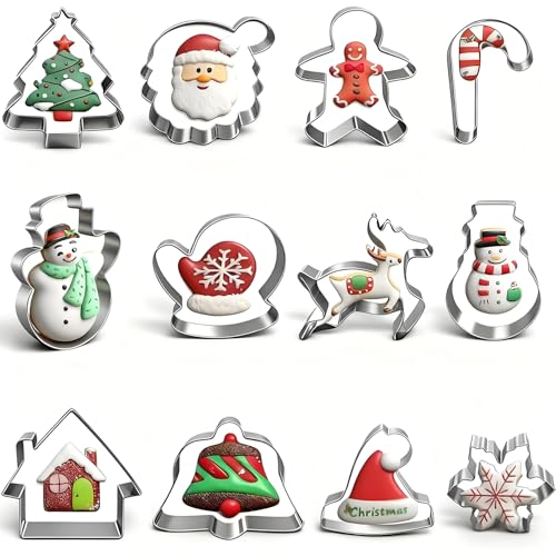 12 pièces Ensemble Emporte Pièces Noël,Emporte piece noel, emporte piece patisserie inoxydable Ensemble (SDJ-02)