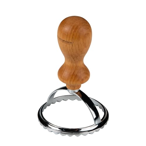 Fackelmann 31115 Emporte piece ravioli rond, emporte piece rond, moule ravioli, emporte pièce, moule a ravioli, pates fraiches, Acier inoxydable, Bois, 10 x 6,5 x 6,5 cm, Marron