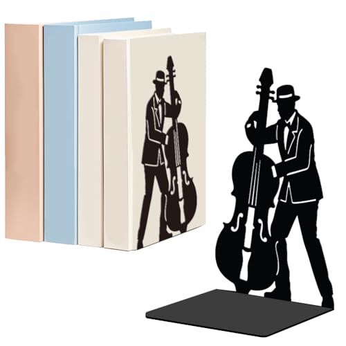 WADORN 1 Paire de Serre Livres Décoratifs en Métal Performances de Jazz pour Étagères Serre Livres, Décoratifs en Métal Robuste Jazz Cello Antidérapants Noirs de L pour Bibliothèque 13.5x11x20cm