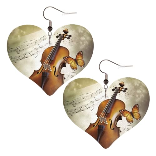 Boucles D'Oreilles En Cuir En Forme De Larme Butterfly And Cello Heart Élégantes Et Belles Les Accessoires De Costume Balancent Pour Parfaites Pour Les Fêtes Remise De Diplôme