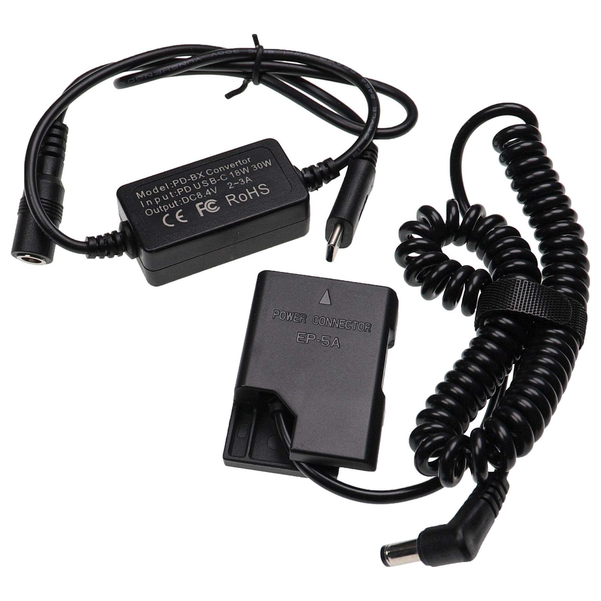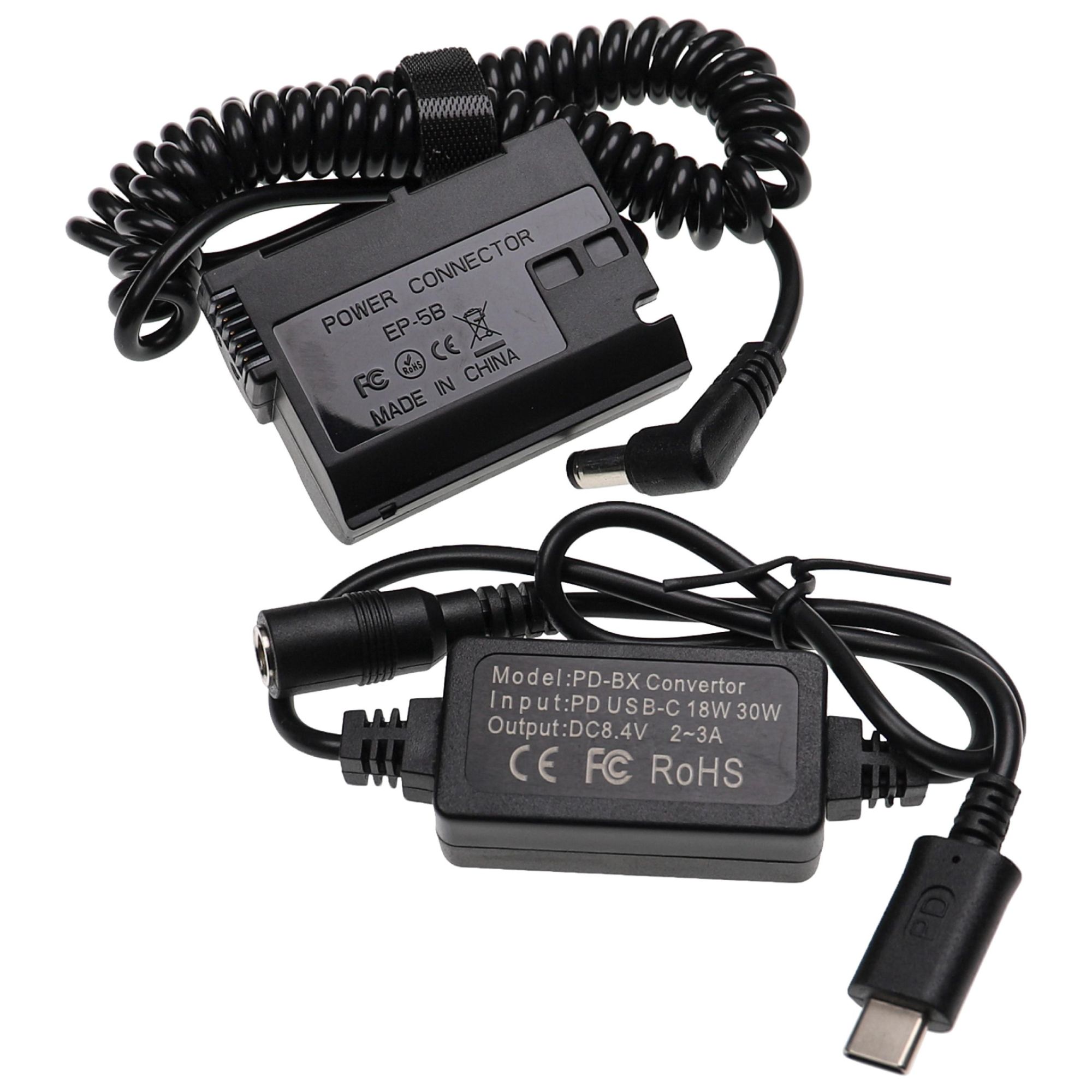 vhbw Alimentation USB remplacement pour Nikon EN-EL15A pour appareil photo numérique - Coupleur DC (replacement pour Nikon) - 2m, câble spiralé