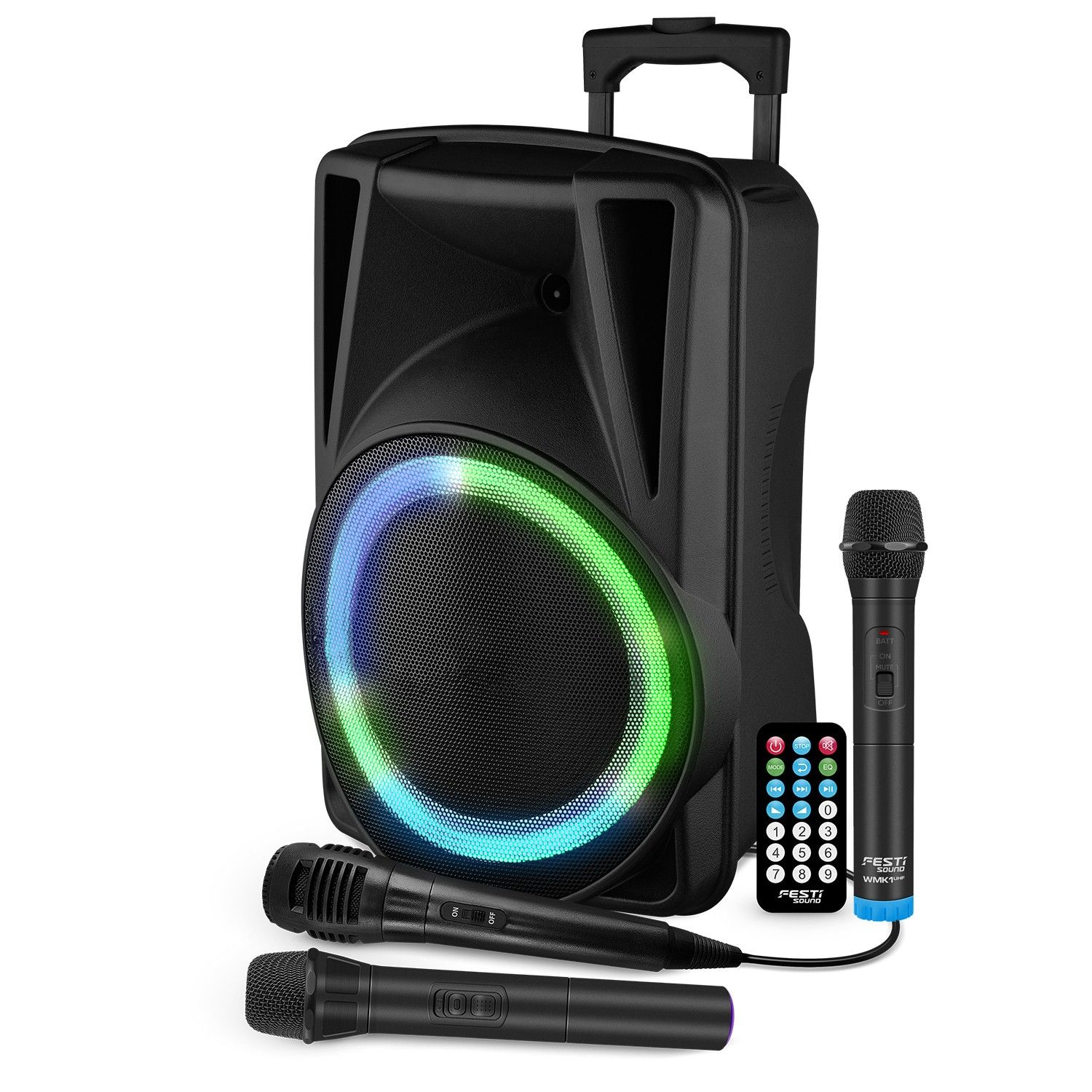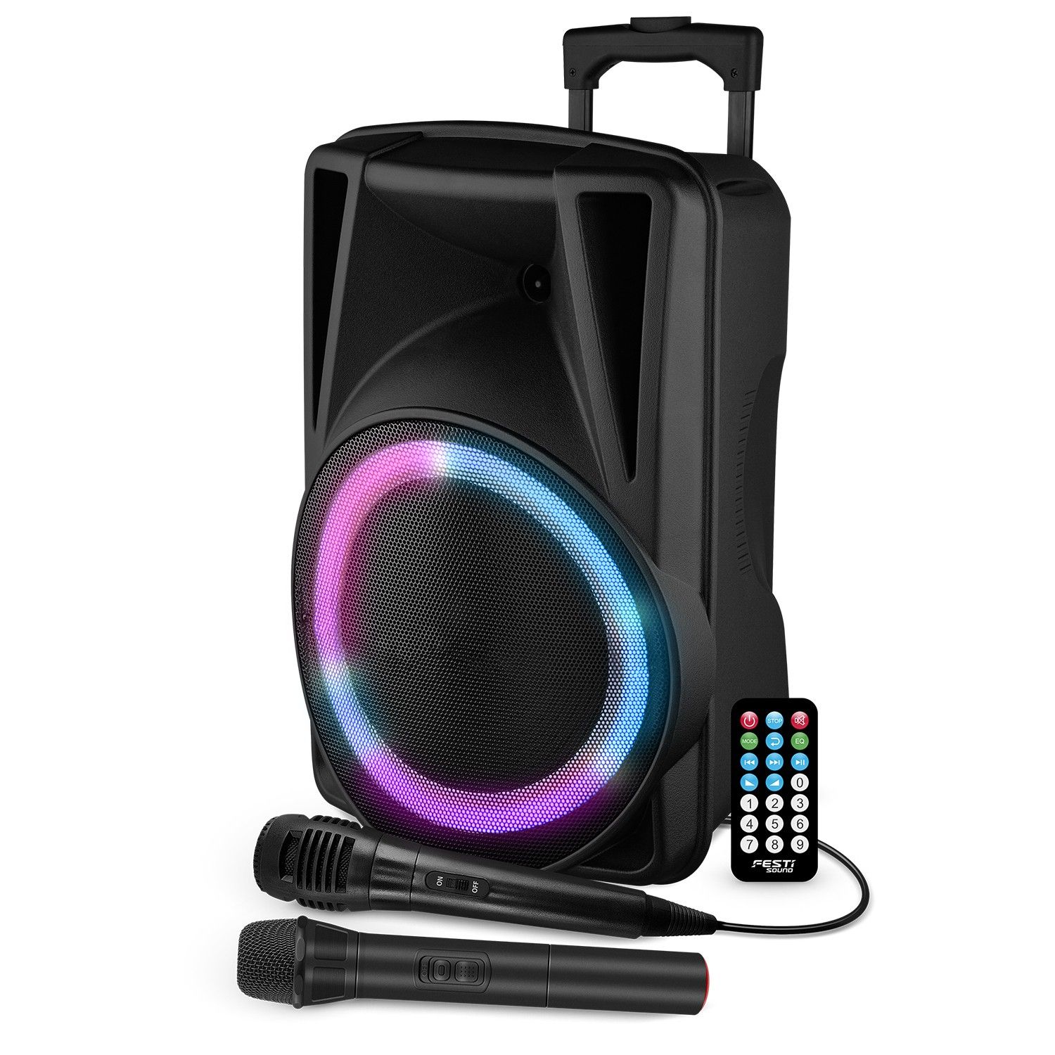 Enceinte Active - FestiSound FESTI12 - 12" 31CM - 600W - Batterie - RING LED - USB SD Bluetooth TWS - 2 Micros + OVNI