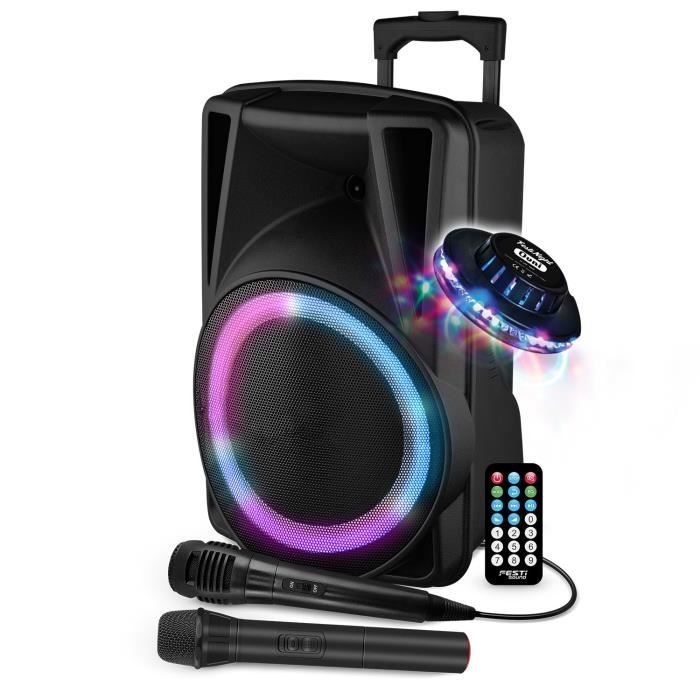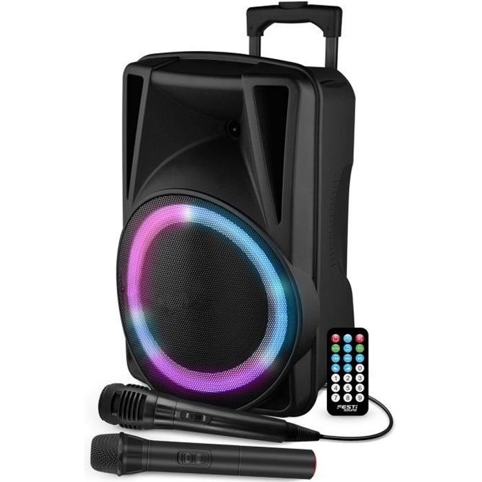 Enceinte Active - FestiSound FESTI12 - 12 31CM - 600W - Batterie - RING LED - USB SD Bluetooth TWS - 2 Micros + Ampoule