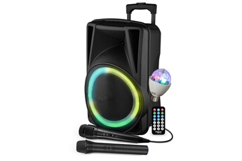 Enceinte Sonorisation - FSD12 - 12" 31CM - 600W - Batterie - RING LED - USB SD Bluetooth TWS - 3 Micros Karaoké