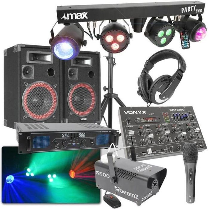 Pack DJ - SKYTEC - Enceinte 500W - Amplificateur 2x250W - Machine à fumée - Table de mixage 8 canaux
