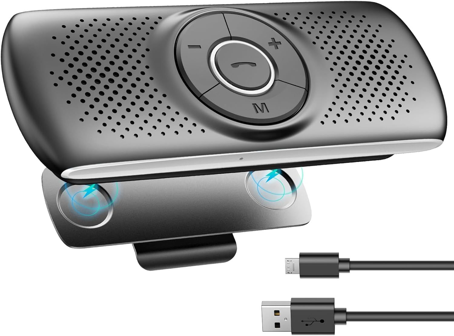 Kit Mains Libres pour Voiture Bluetooth 5.0, Haut-Parleur sans Fil Micro Intégré, Enceinte sans Fil avec Réduction de Bruit,Supporte Siri et Google Assistant pour Téléphone 20Hrs de Conversation