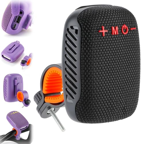 Qosigote Waterproof Bicycle Bluetooth Speaker with Mounting Bracket, Rechargeable Mini Enceinte Bluetooth SD/TF/TWS/AUX, Portable Enceinte Connectée pour Outdoor Cyclisme, Randonnée (Améliorée,Noir)