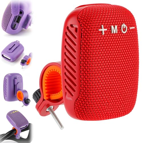 Qosigote Waterproof Bicycle Bluetooth Speaker with Mounting Bracket, Rechargeable Mini Enceinte Bluetooth SD/TF/TWS/AUX, Portable Enceinte Connectée pour Outdoor Cyclisme, Randonnée (Base,Rouge)
