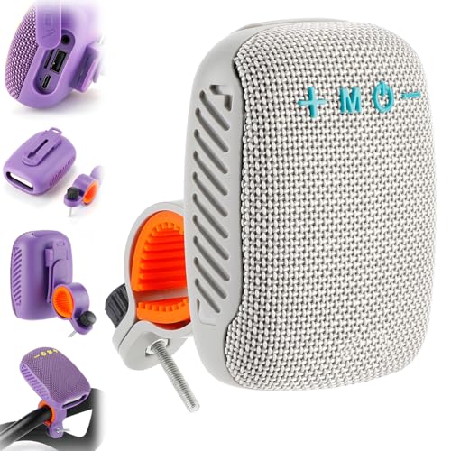 Qosigote Waterproof Bicycle Bluetooth Speaker with Mounting Bracket, Rechargeable Mini Enceinte Bluetooth SD/TF/TWS/AUX, Portable Enceinte Connectée pour Outdoor Cyclisme, Randonnée (Base,Gris)