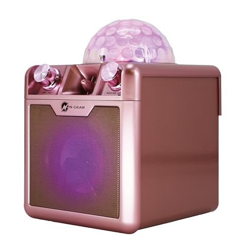 N-Gear Disco Block 410 Space Pink Enceinte portable de fête 50W max avec haut-parleur 4", Bluetooth, fonction powerbank, éclairage LED RGB, 6h d’autonomie, deux micros filaires et télécommande incluse