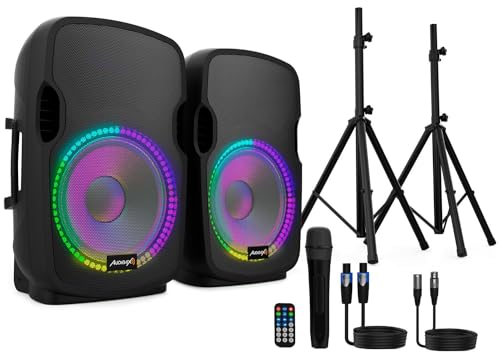 Pyle Kit Enceintes avec 2 Pieds, Enceinte Bluetooth Puissante,1000W, Haut Parleurs Actives et Passives, Montage de 35 mm, Lecteurs MP3/USB/SD/AUX, 2 Supports, Micro, Télécommande