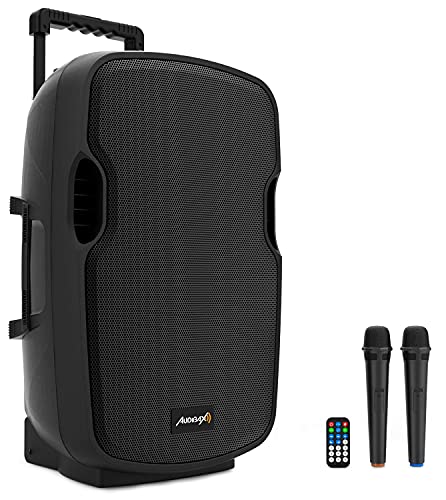 Audibax Denver 15 - Haut-Parleur Active 15" - Puissance 250W - Enceinte amplifié - Connexion USB/SD - Haut-Parleur Bluetooth - Comprend des roulettes + 2 Microphones à Main - Batterie de 6 Heures