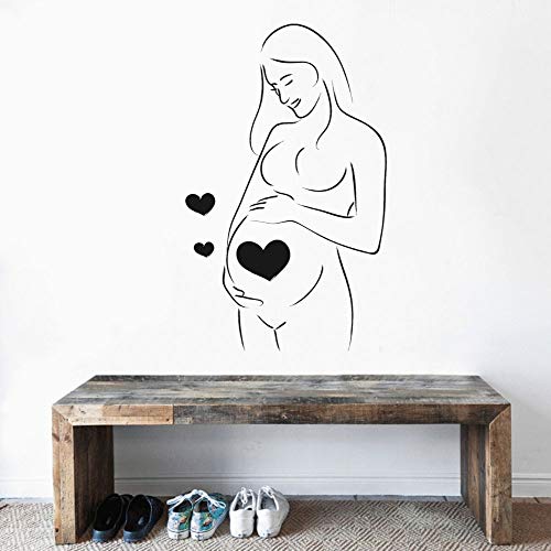 TUOQIANNAN Sticker mural amovible - Silhouette de femme enceinte avec cœur - Convient pour la maison, la chambre à coucher et la chambre d'enfant - Autocollant mural en vinyle noir 52 x 94 cm