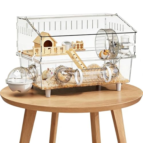 Cage pour Hamster en Acrylique - Grand Habitat Transparent | Caisse Claire pour Petits Animaux | Enceinte De Maison en Bois De avec Tuyau D'échelle De Roue Courante, Boîte De Jeu Intérieure Et Ex