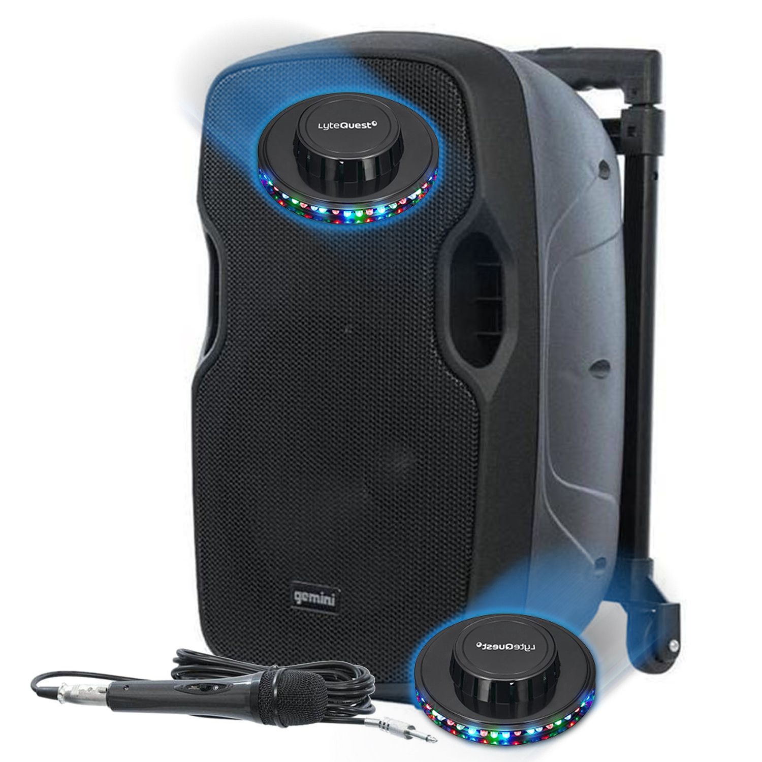 Enceinte Autonome DJ PA Sono Gemini AS 10 TOGO sur Batterie avec Micro 1000 Watts USB/BT/AUX/SD + 2 jeux de lumières