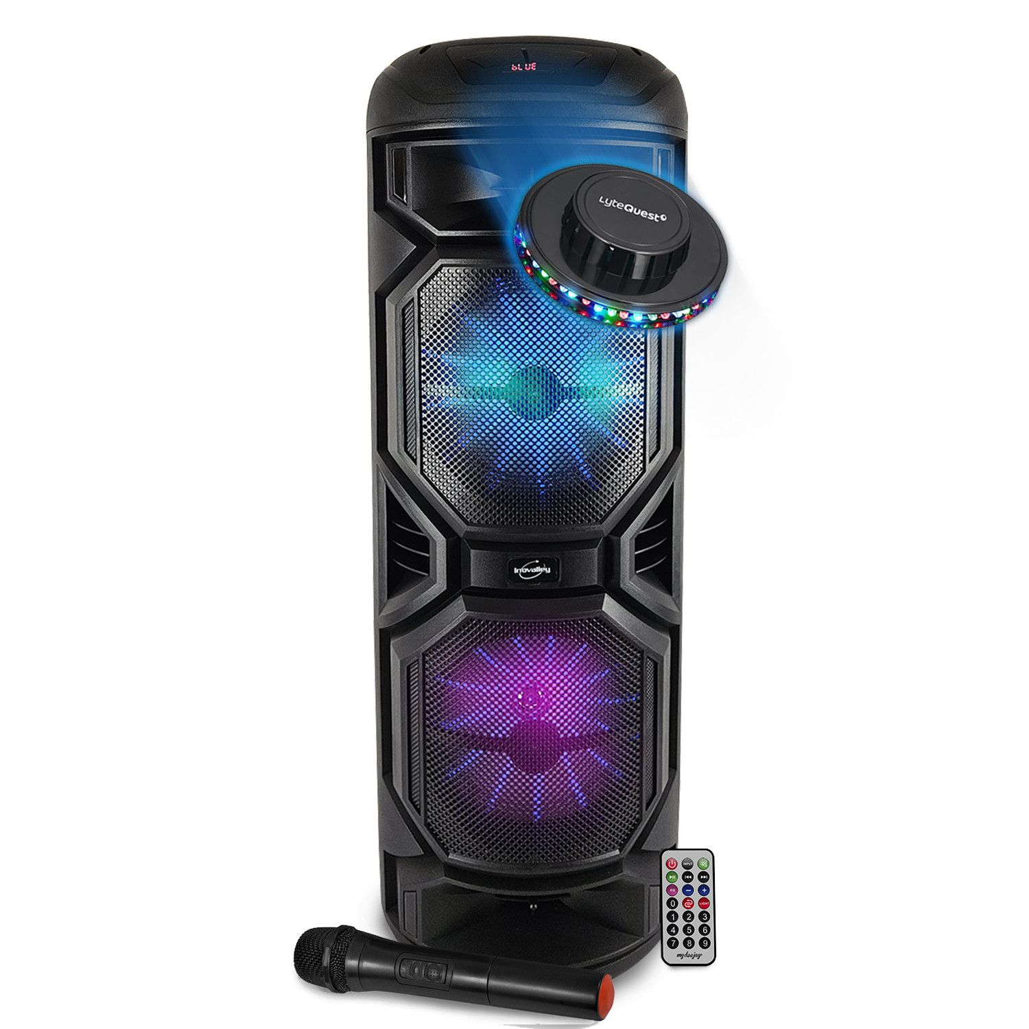 Enceinte DJ Karaoké 800W sur Batterie Lumineuse - INOVALLEY - HP59-XXL - Bluetooth, USB, Micro sans Fil, Réglage Bass, OVNI LED