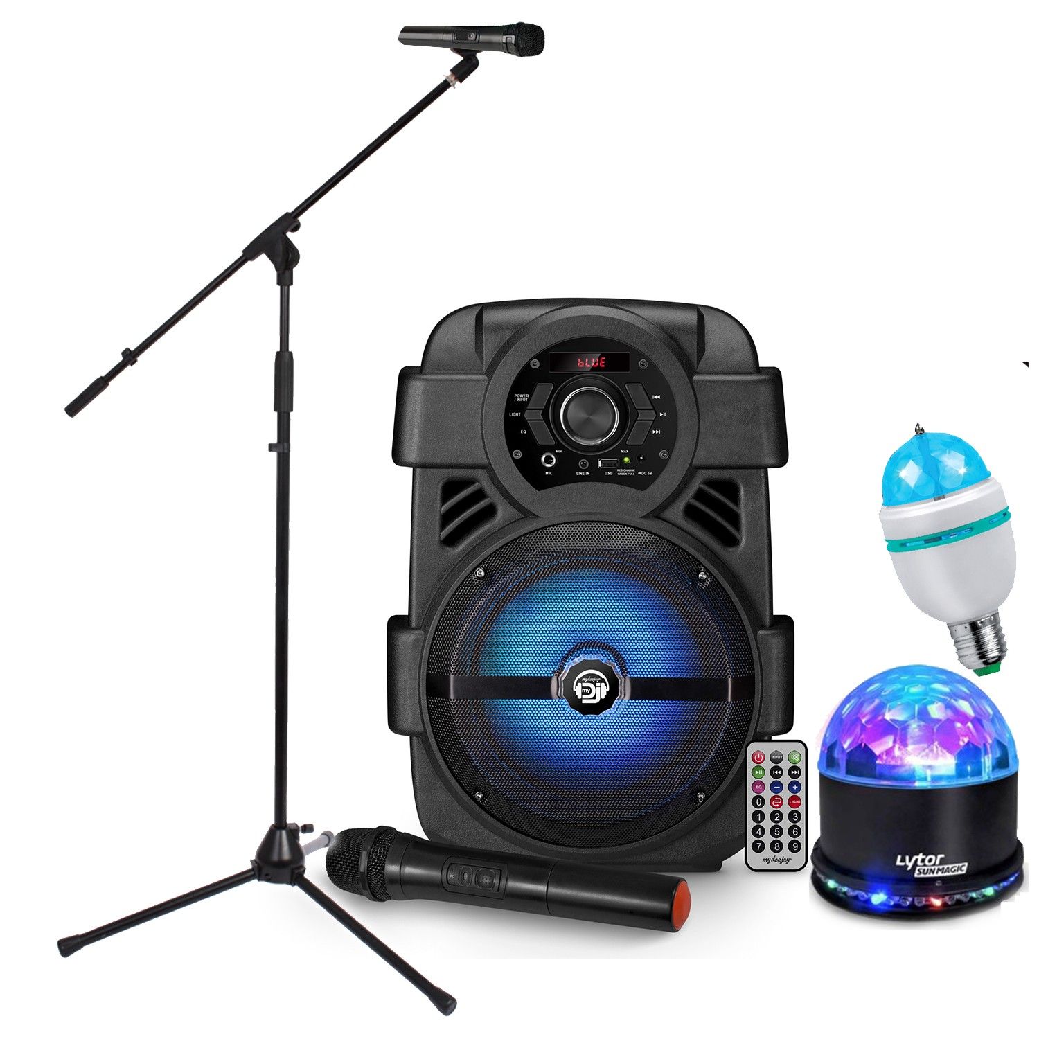 Media-Tech FUNBOX BT MT3181 Karaoké Enceinte Bluetooth Portable avec Microphone Bluetooth 40 W RMS, Prend en Charge Les Cartes Micro SD, éclairage Couleur RVB