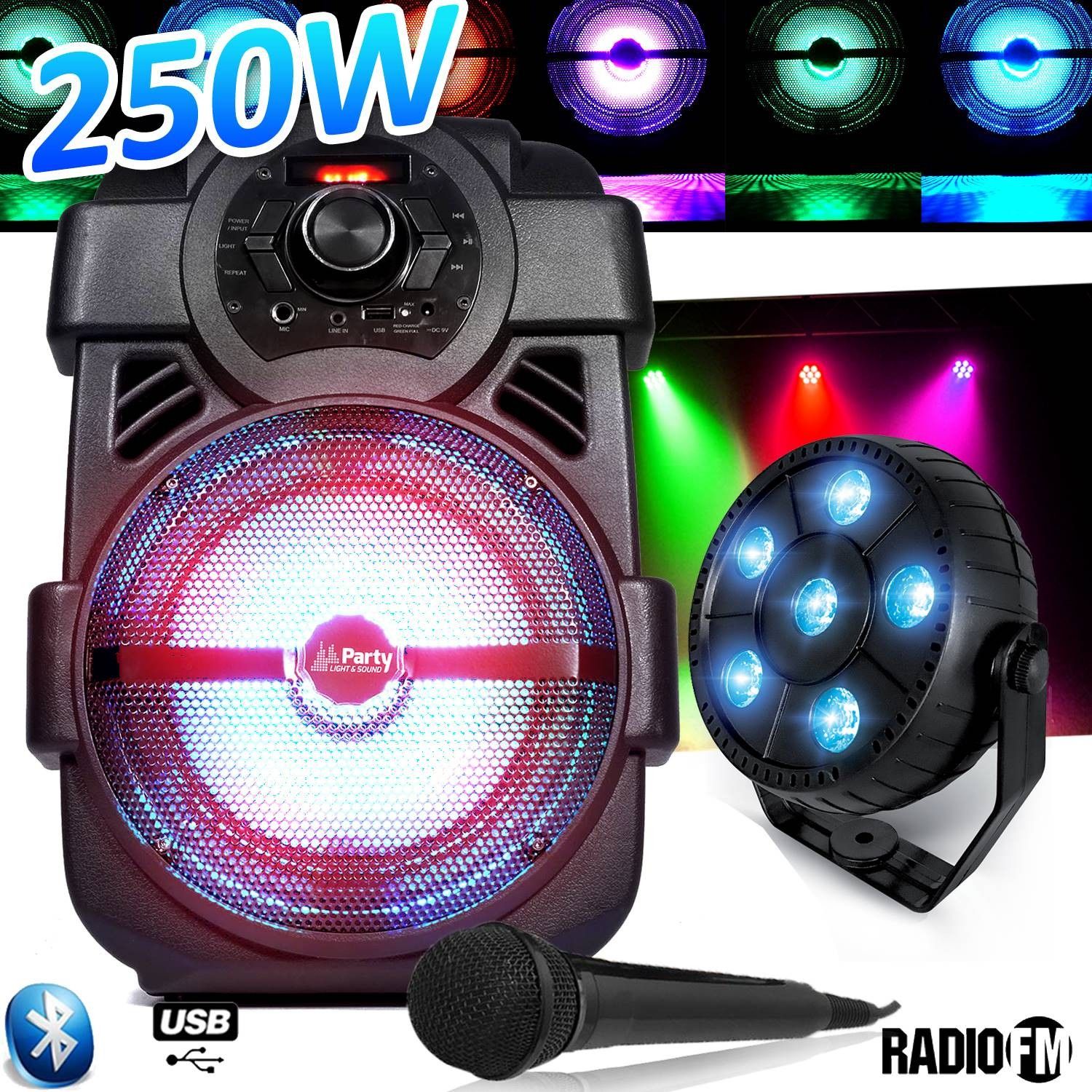 Karaoké Enfants Enceinte 250W portable Batterie MICRO HANDY180 avec USB/BLUETOOTH/ RADIO FM + Par Ball