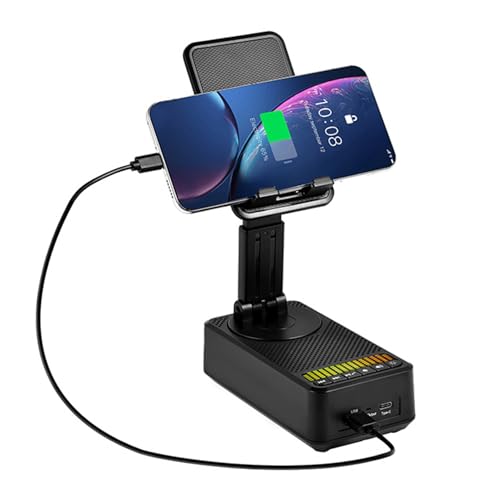 Enceinte Bluetooth 3 en 1 avec support de téléphone et fonction Power Bank 5000 mAh, lecteur de musique pliable avec lumière ambiante, direction et angle réglables, noir
