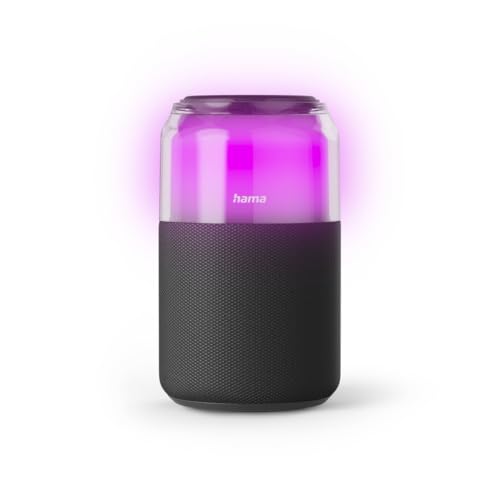 Hama Enceinte Bluetooth Portable 'Can Speaker' (Haut Parleur 4 Modes Lumineux LED, 5W, Autonomie 10H, sans Fil, TWS, Charge USB-C, Lecture Clé USB-A, Idéal Musique, Bureau, Cadeau) Noir