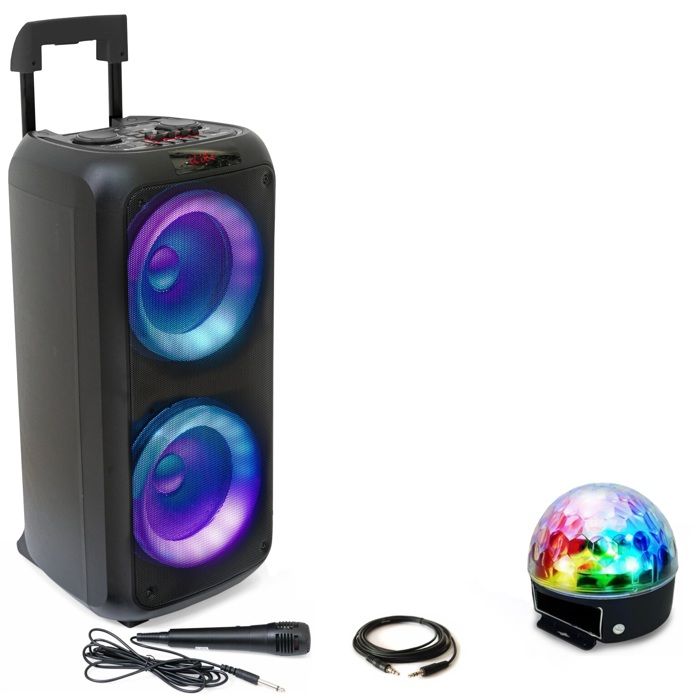 Ibiza - Pack Karaoké Enceinte Bluetooth USB AUX SD TWS sur Batterie 600W - 2 Micros - Enfant Cadeau Boum Anniversaire Noël Fête Musique