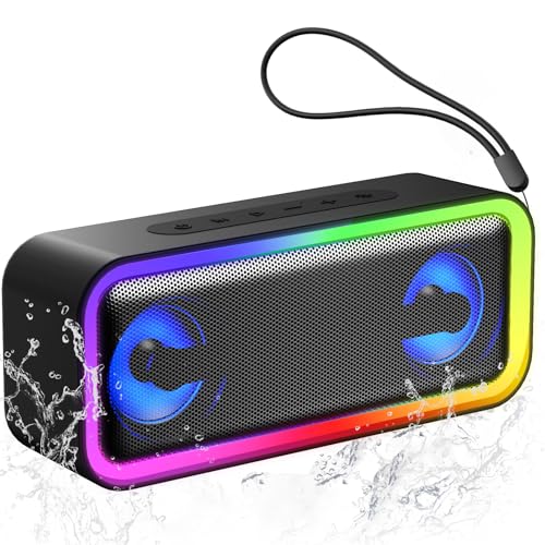 dotn Enceinte Bluetooth portable puissante 20 W, haut-parleur Bluetooth 5.4 avec microphone HD, lumière RVB, jumelage TWS, audio HiFi stéréo, haut-parleur Bluetooth étanche IP7 pour l'extérieur