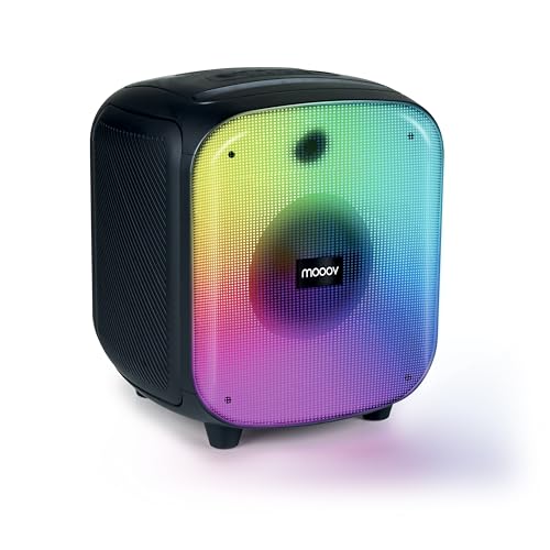 mooov 477370 Enceinte Portable Bluetooth Puissante - Son Haut Parleur de Qualité pour Musique Interieur à la Maison ou Exterieur avec Effets Lumineux et Poignée de Transport - Noir