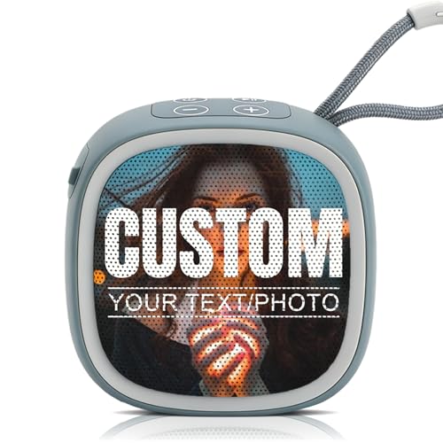 Enceinte Bluetooth Personnalisée avec Photo ou Texte, Mini Enceinte Bluetooth Portable, Haut Parleur Bluetooth sans Fil avec Support Carte TF/USB/FM/TWS, Petite Enceinte pour Voyage Maison (Gris)