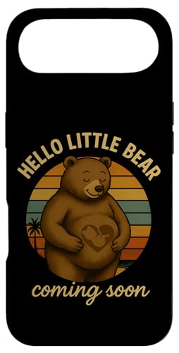 Adorable Ours Enceinte rétro Coucher de Soleil Annonce de Grossesse Coque pour iPhone 17