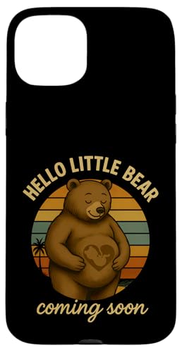 Adorable Ours Enceinte rétro Coucher de Soleil Annonce de Grossesse Coque pour iPhone 15 Plus