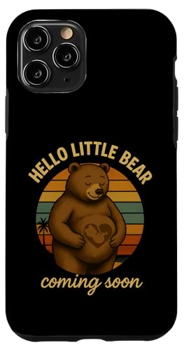 Adorable Ours Enceinte rétro Coucher de Soleil Annonce de Grossesse Coque pour iPhone 11 Pro
