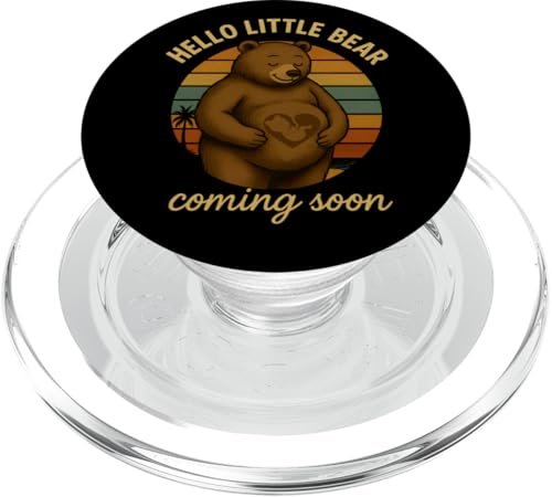 Adorable Ours Enceinte rétro Coucher de Soleil Annonce de Grossesse PopSockets PopGrip pour MagSafe