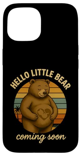 Adorable Ours Enceinte rétro Coucher de Soleil Annonce de Grossesse Coque pour iPhone 15