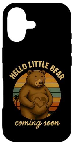 Adorable Ours Enceinte rétro Coucher de Soleil Annonce de Grossesse Coque pour iPhone 16