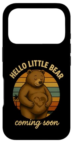 Adorable Ours Enceinte rétro Coucher de Soleil Annonce de Grossesse Coque pour iPhone 13 Pro