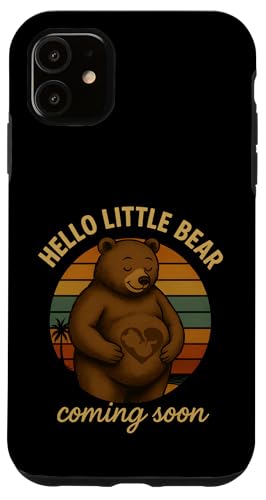 Adorable Ours Enceinte rétro Coucher de Soleil Annonce de Grossesse Coque pour iPhone 11