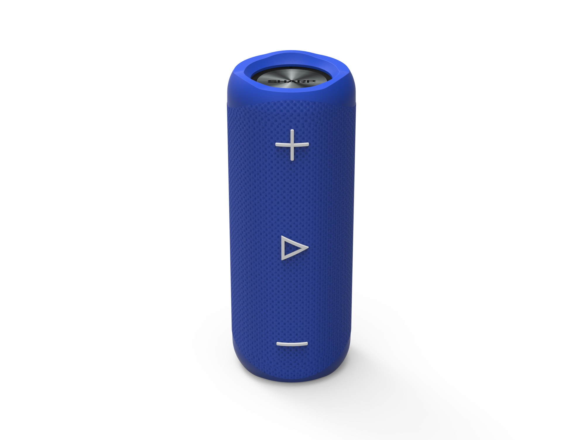 Sharp GX-BT280 (BL) Enceinte stéréo Bluetooth - basses puissantes - plage sonore hautement dynamique / 12 heures d'autonomie / étanche à la poussière et aux éclaboussures / microphone pour les appels téléphoniques, Google & Siri - Bleu