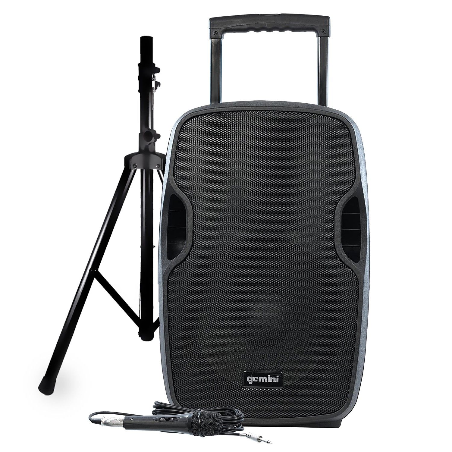 Enceinte active gemini 1000w - sur batterie - usb-bluetooth-aux-sd - microphone, sonorisation dj pa pied , portique lumières
