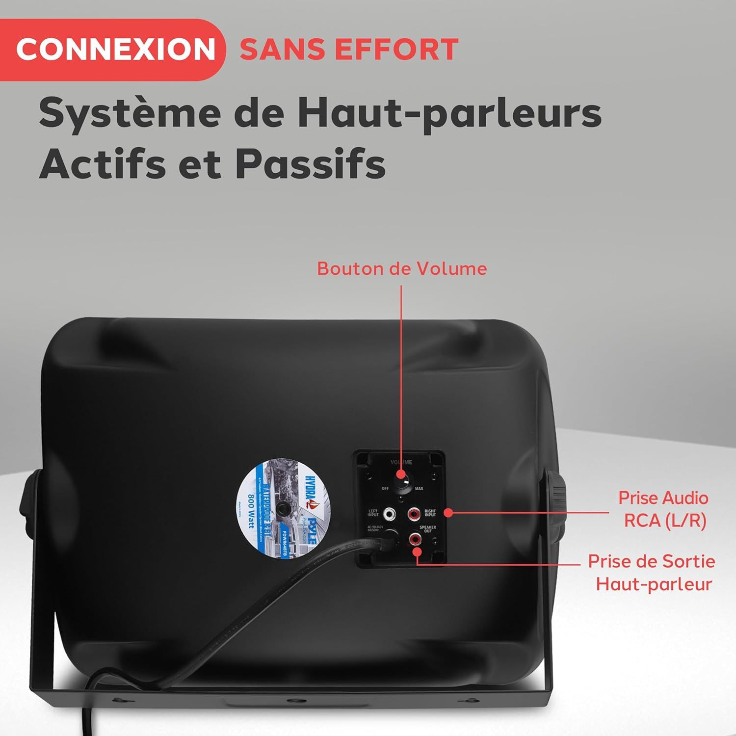 5,25 Pouces,600 Watts Bluetooth Enceintes D'Extérieur Avec Amplificateur Stéréo Câblé Pour Toutes Les L'Intérieur Et L'Extérieur Terrasse(4 Haut-Parleurs Noirs)
