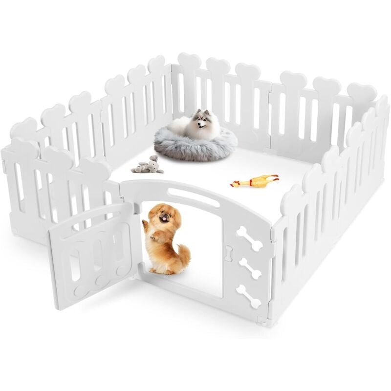 Parc pour Chien 60 cm Haut, Plastique Parc Chien 5+1 PCS Panneaux, Parc Chiot Pliable avec Portail, Enclos pour Chat et Lapin, (Blanc)