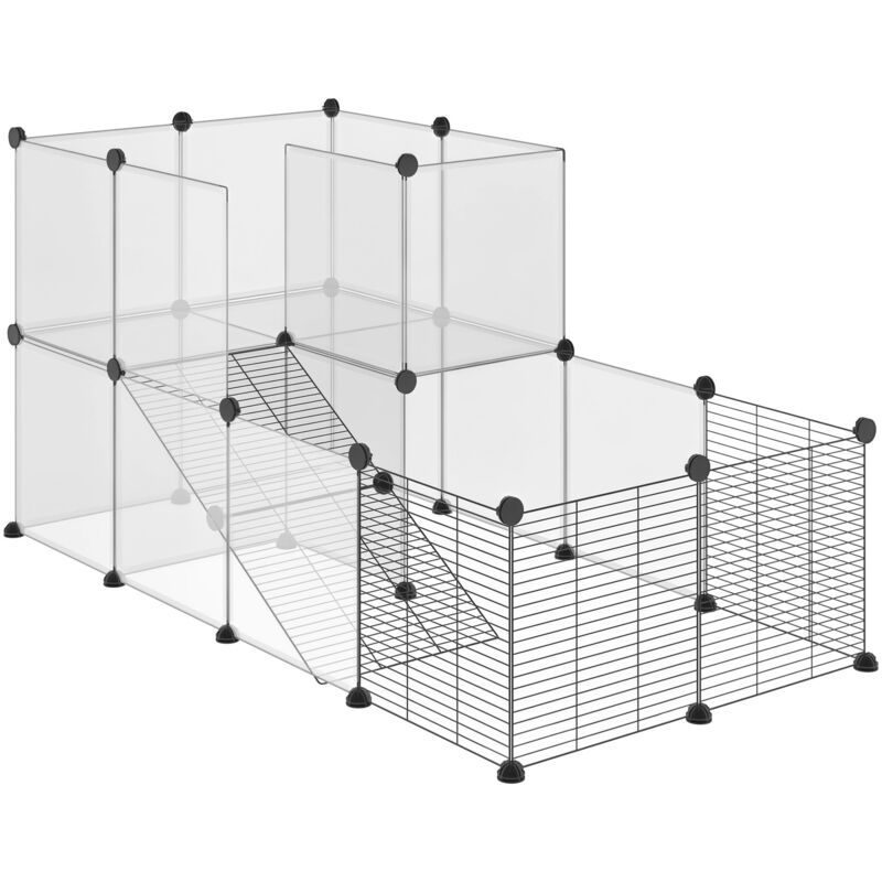PawHut Enclos modulable DIY pour lapin, cochon d'Inde, chinchilla - 27 panneaux noir, cage design pour petits animaux domestiques