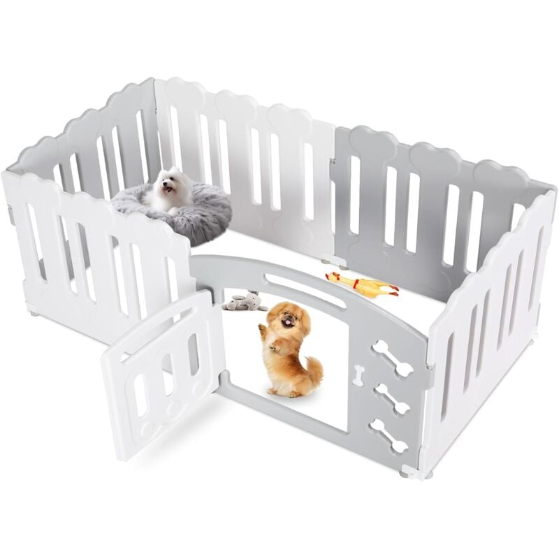 Parc pour Chien 60 cm Haut, Plastique Parc Chien 5+1 PCS Panneaux, Parc Chiot Pliable avec Portail, Enclos pour Chat et Lapin, (Gris+Blanc)
