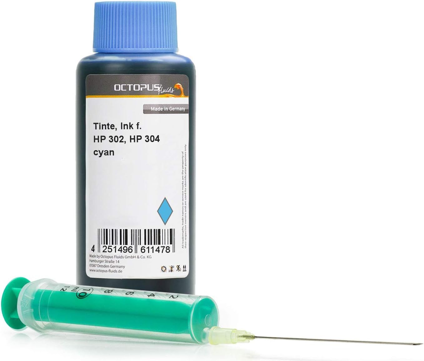 Encre Pour Imprimante 100Ml Compatible Avec Les Cartouches Pour Imprimante Hp 302, Hp 304 Cyan Avec Seringue De Recharge Et Accessoires (Pas D'Oem)[ENC943729]